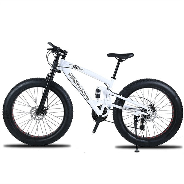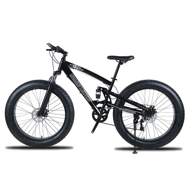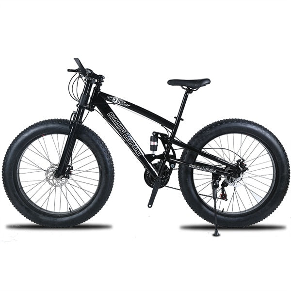 Type: Mountain BikeGender: MenFork Suspension: YesFoldable: noFrame Material: SteelFork Material: SteelRim Material: Aluminum AlloyApplicable People: UnisexVolume: 0.1 m3Stature: 145-193cmFront Fork Type: Spring Fork (Low Gear Non-damping)Wheel Size: 26"Braking System: Front and Rear Mechanical Disc BrakeFrame Type: Hard Frame (Non-rear Damper)Pedal Type: Ordinary PedalBrand Name: Running LeopardGears: 7/21/24/27speedNet Weight: 22.5-23.5kgLength (m): 180cmGross Weight: 23-24kgLoad Capacity: 135kgFront switch: SHIMANORear switch: SHIMANOFrame size: 17.5 inchFrame material: High-carbon steelPedal: Ordinary anti-skid foot pedalTyre width: 4.0Style of bicycle: Folding bicycle. Can not fold. Two kinds of bicyclesFolding bicycle wheel: Magnesium alloy wheelThe brake disc of a folding bicycle: Oil, brakeA fork of a folding bicycle: Spring Resilience/Oil Damping